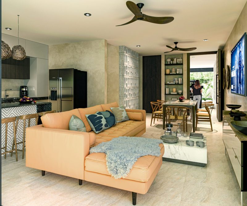 With only 7 meticulously designed townhouses, NARA blends privacy with urban convenience. Each unit features 3 bedrooms, 3 ½ bathrooms, a private pool (chukum-finish), and a two-vehicle covered garage. Interiors highlight quality craftsmanship: granite kitchen countertops, upper and lower cabinetry, marble bathroom counters, tempered-glass shower enclosures and large-format tile floors (45 × 90 cm) for a modern, elegant ambiance.
